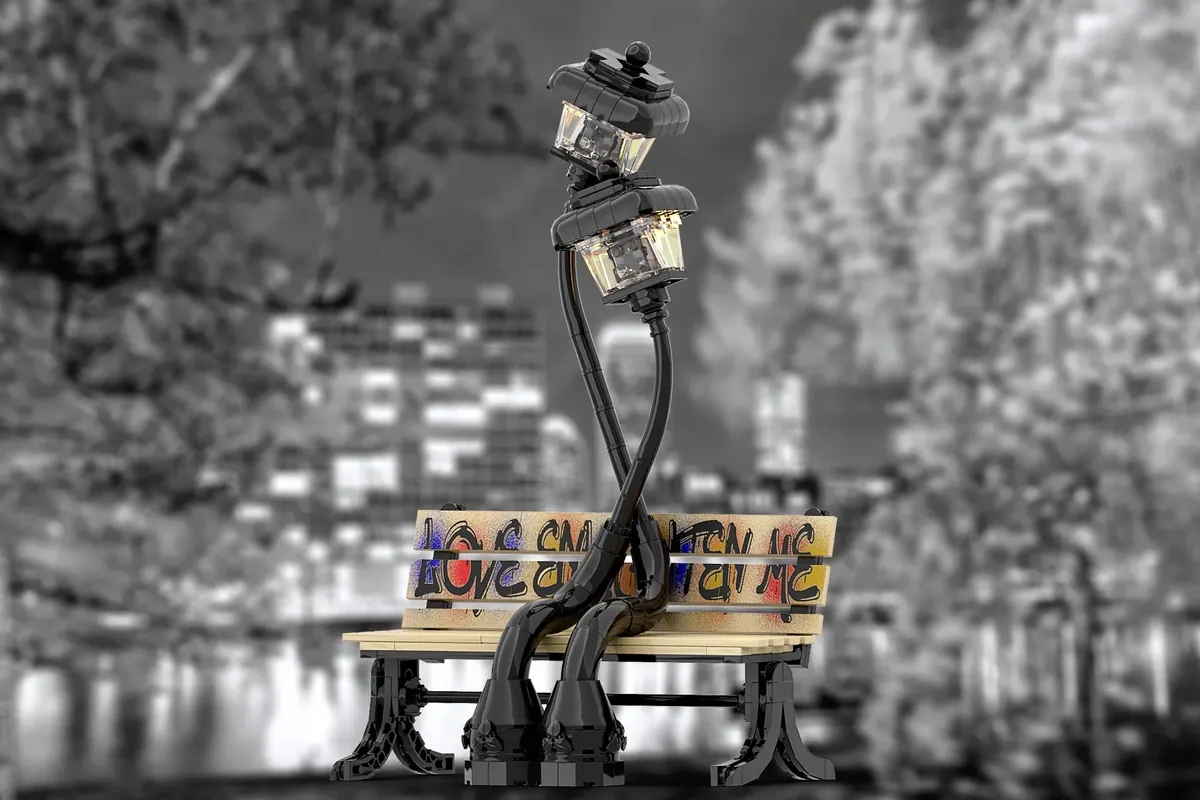 "LOVE ENLIGHTEN ME" THE BENCH OF THE LAMPPOSTS IN LOVE |